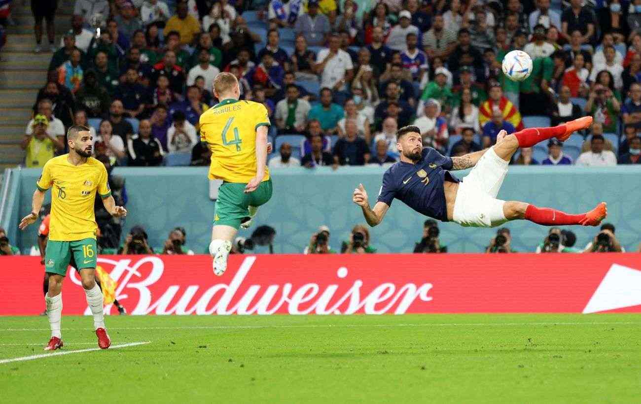 З початком другої половини французька команда полетіла вперед. Моменти біля воріт збірної Австралії посипалися наче з рога достатку. Ось Жиру пробив поруч зі стійкою ударом через себе. Далі постріл Грізманна після скидки Тео Ернандеса оборонець виніс із лінії воріт.