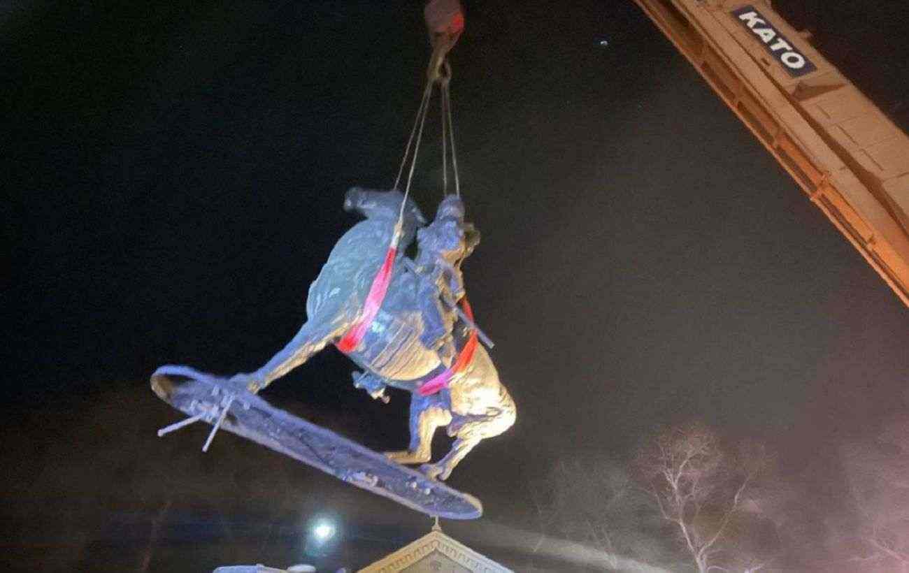 Також робітники зняли з постаменту три постаті сподвижників російської імператриці.