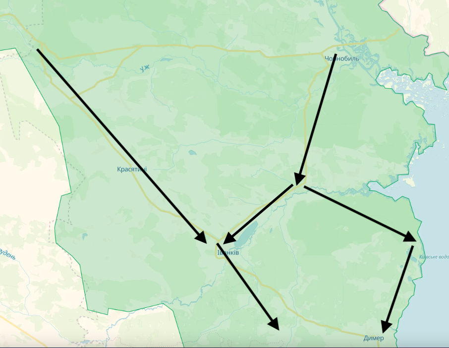 Перші ракетні удари противника були націлені на позиції української ППО, аеродроми, військові об'єкти та склади. У цей же час о четвертій ранку найбільш боєздатні частини росіян зайшли з території Білорусі до Чорнобильської зони двома угрупованнями. Одне рухалася через Чорнобиль, друге – через колишнє селище Поліське, розташоване неподалік річки Уж. Після окупації Чорнобильської АЕС російські війська мали дійти Іванкова.