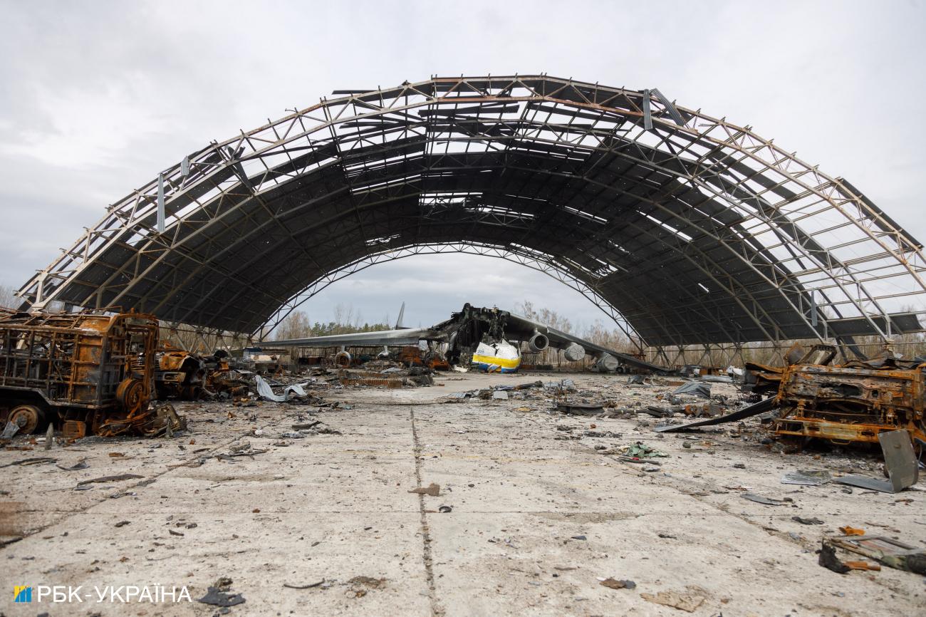 Залишки АН-225 МРІЯ на аеродромі Гостомелю (фото: РБК-Україна, Віталій Носач)