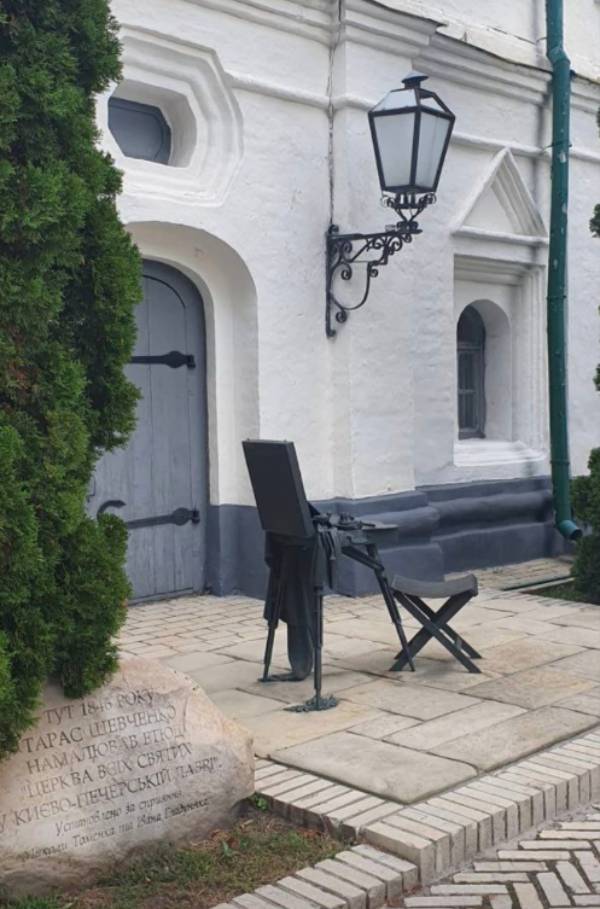 На території Києво-Печерської лаври є місцина, де Тарас Григорович намалював етюд "Церква всіх святих" у 1846 році. Зараз на цьому місці встановлені стілець і стіл із художнім приладдям, які дозволяють сучасним українцям побачити, в яких умов творив Шевченко.