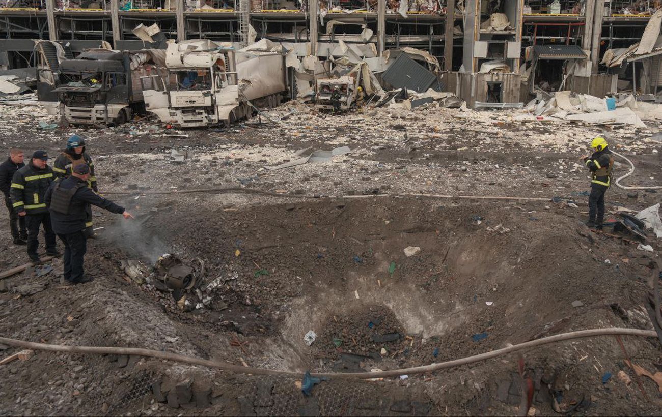 У Святошинському районі Києва після нічної масованої атаки РФ утворилася велика вирва поруч із 4-поверховою складською будівлею.