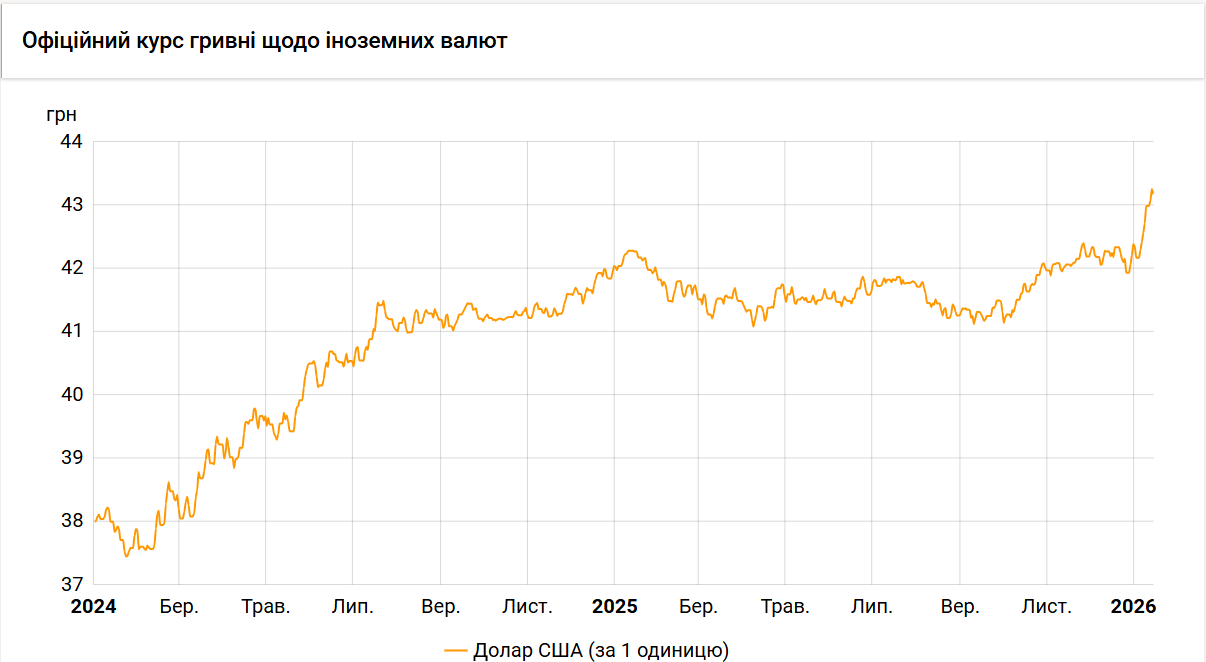 Нацбанк почав знижувати офіційний курс долара після періоду його рекордного зростання, курс на 14 січня встановлений на рівні 43,18 гривні (-0,08 гривні щодо попереднього дня).