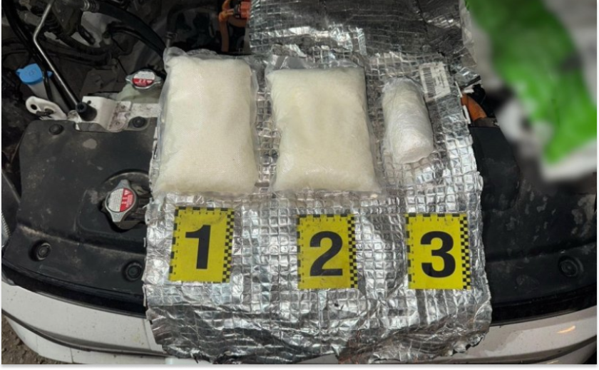 У ході огляду автомобіля прикордонники спільно з поліцією та СБУ виявили кристалічну речовину, схожу на альфа-піролідинопентіофенон. Пакети із забороненою речовиною загальною вагою близько 2200 грамів були приховані у спеціально обладнаному сховку в моторному відсіку.